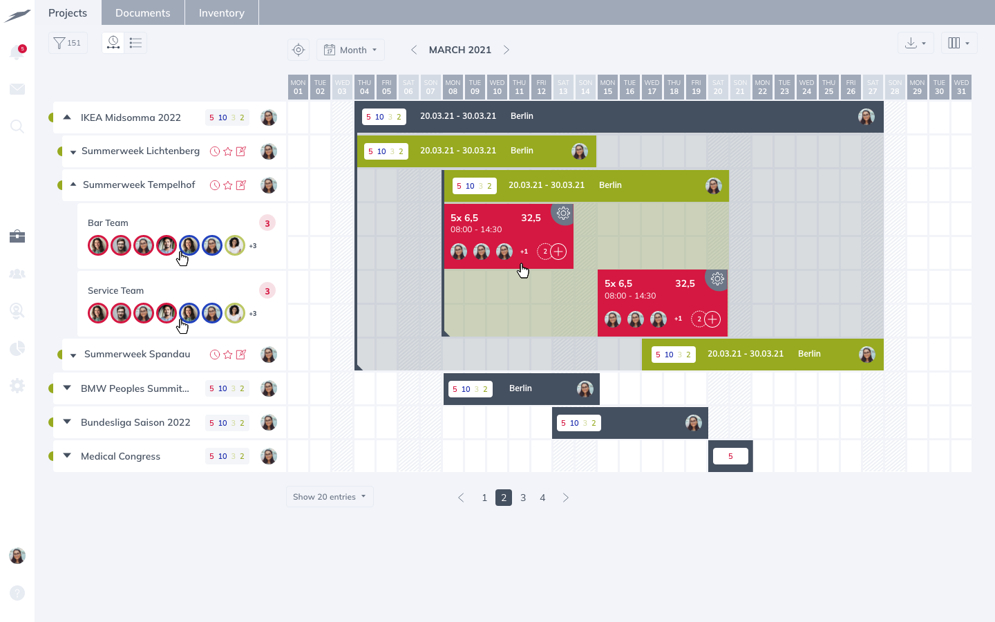 Auf Projektebene können unterschiedliche Funktionen definiert werden: