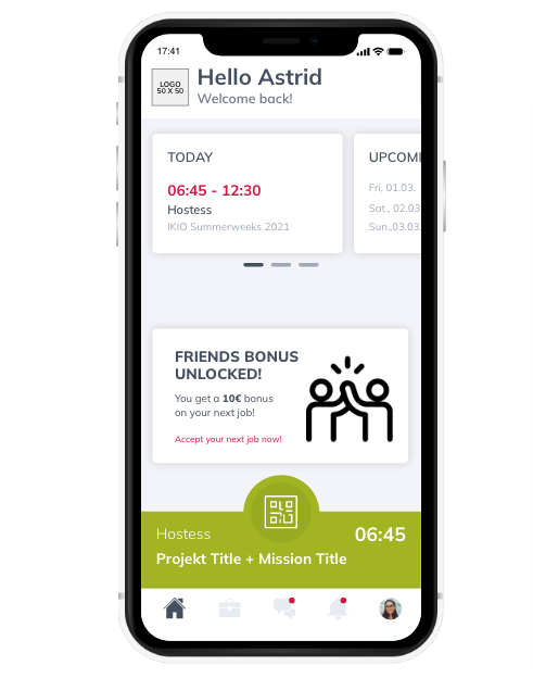 Kontakte gelangen zu ihrem individuellen QR-Code direkt auf dem Dashboard ihres Jobportals.