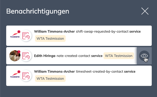 Benachrichtigungen werden automatisch in Teamhero generiert, wenn etwas innerhalb deiner Bewerber, Kontakte bzw. Aufträge passiert. Damit wirst du stets umgehend informiert und kannst entsprechend reagieren.