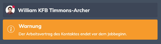Wird versucht, einen Kontakt auf einen Job zu buchen, der nach dem Vertragsende liegt, wird dem Cockpitbenutzer eine entsprechende Warnung angezeigt.