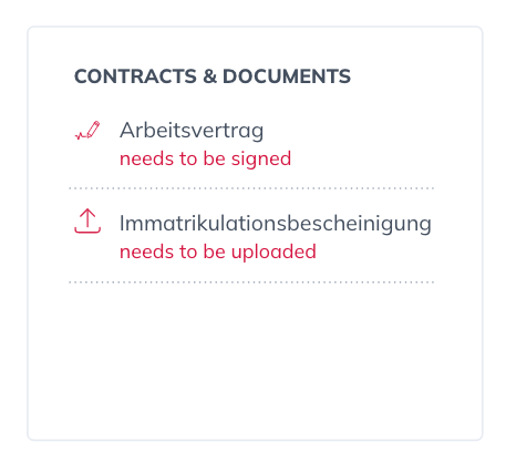 Dein Arbeitgeber bzw. Projektleiter kann über das Jobportal Dokumente bei dir anfragen w.z.B. eine Immatrikulationsbescheinigung bzw. dir auch Dokumente w.z.B. deinen Arbeitsvertrag bereitstellen.